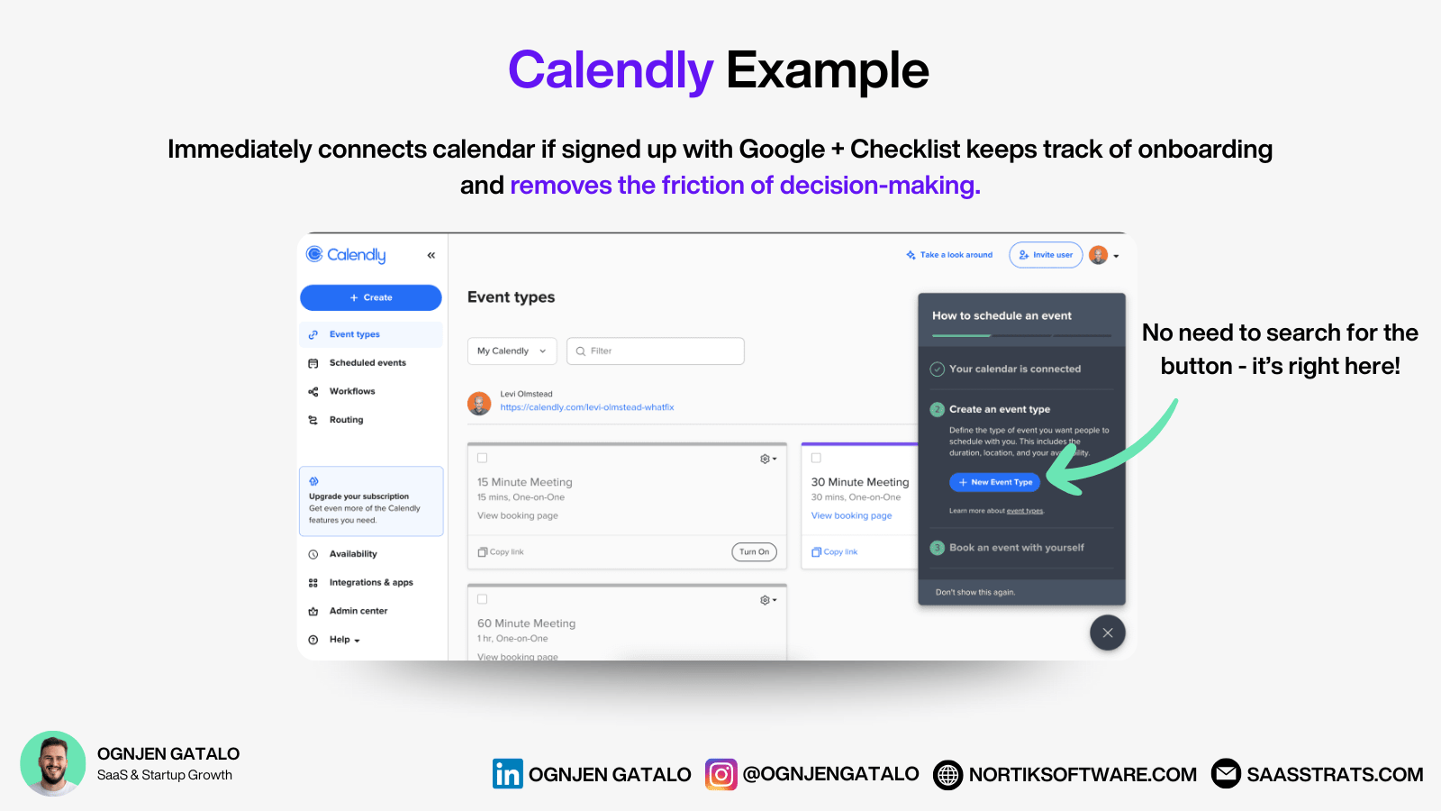 Bonus element: They remove the friction of decision-making by placing the “New Event Type” inside the onboarding checklist. No need to wander around. 💯