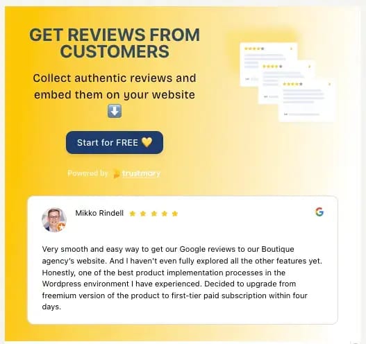Trustmary placed a customer review inside their hero section, maximizing trust and clicks towards the Get Started CTA.